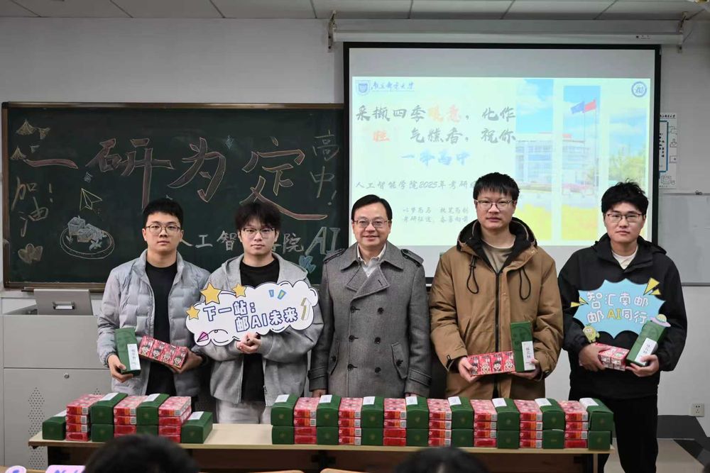 11月27日,人工智能学院开展“冬季送暖·研途相伴”考研慰问活动。学院党委书记范结兵、副院长尹海涛、党委副书记葛丹及辅导员深入考研教室,与学子交流备考情况,并发放寓意“蟾宫折桂”的桂花糕与“前程兴旺”的旺仔牛奶。